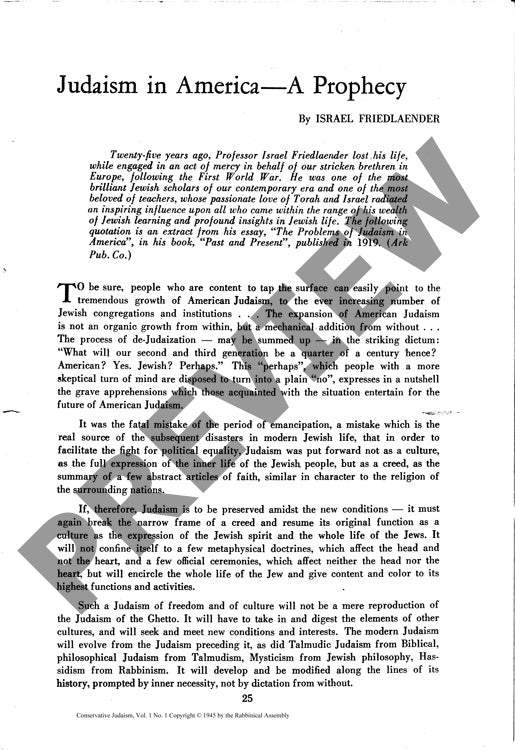 Judaism in America a Prophecy