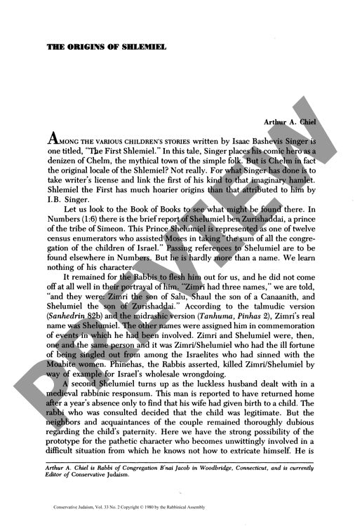 From ancient Jewish texts to European Romanticism, the archetypal figure of the Shlemiel traces an unexpected literary journey, originating not in the fictional town of Chelm but in the biblical figure of Shelumiel ben Zurishaddai, a prince of the tribe of Simeon. Through rabbinic interpretation, this census-taker transformed into Zimri, the ill-fated consort of Moabite women killed by Phinehas - a transformation that would later influence Adalbert von Chamisso's 1814 character Peter Schlemihl and Heinrich Heine's poetic works in "Romancero." Drawing from textual analysis of the Book of Numbers, talmudic commentary (Sanhedrin 82b), midrashic literature (Tanhuma, Pinhas 2), medieval rabbinic responsa, and nineteenth-century German poetry, this research uncovers a continuous literary tradition spanning millennia. The evolution of Shlemiel from a specific biblical personage to a universal symbol of the hapless individual reveals the sophisticated ways Jewish literary motifs have permeated and enriched broader cultural contexts.