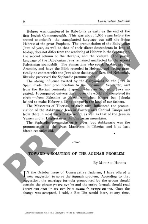 For centuries, Jewish women trapped in failed marriages have faced the devastating agunah problem - unable to remarry due to husbands refusing to grant religious divorce. A carefully crafted modification to traditional Jewish marriage vows could provide a solution while preserving halakhic principles. By incorporating the conditional phrase "על דעת בית דין" (subject to the approval of the Beth Din) into the marriage declaration "הרי את מקודשת לי בטבעת זו על דעת בית דין וכדת משה וישראל," rabbinical courts gain explicit authority to intervene in exceptional cases. Comprehensive analysis of Talmudic sources reveals that Jewish marriage inherently involves three parties: bride, groom, and the Jewish community represented by Beth Din. The principle "כל דמקדש אדעתא מקדש" establishes historical precedent for rabbinic marriage annulment, particularly in cases affecting communal welfare. This study demonstrates how the proposed conditional clause differs crucially from the descriptive phrase "כדת משה וישראל," providing clearer authorization for rabbinic intervention while maintaining traditional divorce procedures for ordinary situations. The findings present a halakhically sound mechanism for addressing the agunah crisis without fundamentally altering Jewish matrimonial law.