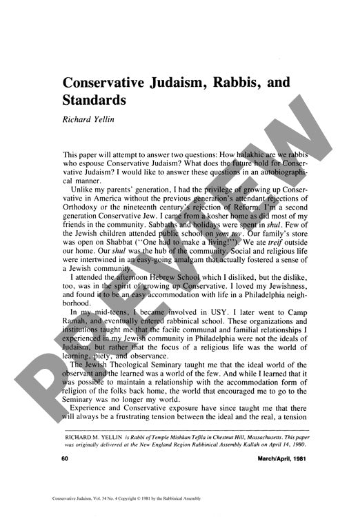 Conservative Judaism Rabbis and Standard