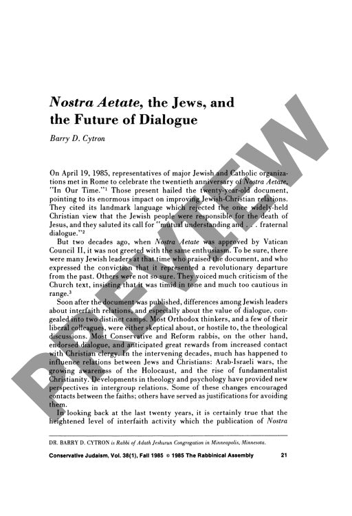 The Vatican II declaration Nostra Aetate in 1965 promised to revolutionize Jewish-Christian relations, yet twenty years later, its transformative potential remained largely unrealized in American Jewish religious institutions. Deep denominational divisions emerged as Jewish leaders grappled with the Vatican's call for interfaith dialogue. Orthodox authorities, led by Joseph B. Soloveitchik and Eliezer Berkovits, mounted theological and historical arguments against engagement, while Conservative and Reform leaders embraced interfaith opportunities despite challenges like the Six-Day War. Through systematic analysis of rabbinical literature, theological writings, and organizational positions from 1965-1985, clear ideological patterns emerge: Orthodox opposition stemmed from theological isolation and post-Holocaust skepticism, while liberal Jewish support emphasized mutual learning, shared secular challenges, and spiritual growth through interfaith encounter. The research integrates James Fowler's developmental psychology work on faith stages, revealing alignment between theological advocacy for dialogue and theories of religious maturity. Despite initial enthusiasm, sustained interfaith programming failed to take root in American synagogues, highlighting an ongoing challenge: finding religiously knowledgeable participants willing to engage in transformative dialogue.