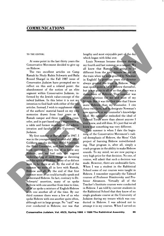 The Conservative Movement's dramatic retreat from Hebrew language requirements has created an educational crisis, severely limiting access to Jewish texts and scholarship. Drawing upon personal experiences as a Camp Ramah camper and counselor from 1947-1951 and observations from rabbinical education at the University of Judaism, this analysis reveals how the Movement systematically dismantled its Hebrew fluency standards. The shift began under Louis Newman's directorship at Camp Ramah, leading to widespread changes in Conservative institutions: Hebrew-conducted courses disappeared from rabbinical schools, admission standards dropped Hebrew competency requirements, and the traditional talmid hakham model of scholarly leadership faded. Through a combination of autobiographical reflection and institutional analysis comparing historical practices with current policies, the research demonstrates how these changes have erected significant barriers to engaging with primary Jewish texts and Israeli scholarship. Without Hebrew fluency, Conservative Judaism's next generation faces diminished ability to participate in Jewish intellectual discourse and contribute to religious thought - a stark departure from the Movement's founding vision of text-centered, scholarship-driven Judaism.