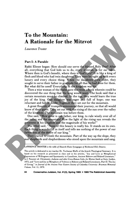 Twin daughters climbing a mountain to serve their king reveals a fresh paradigm for understanding the mitzvot (Jewish commandments) - one that transcends the traditional divide between rational benefits and divine submission. Through this literary parable and its detailed interpretation as an allegory for the Shema prayer, a "functional/intentional" synthesis emerges that honors both human development and divine needs. The methodology combines narrative exposition, theological commentary, and systematic analysis comparing this approach with three established models: rationalist/functional, theurgic/intentional, and religious behavioralist rationales. Mitzvot are categorized into ethical/universal laws grounding human dignity in divine creation, and holy/particular laws expressing Jewish covenantal identity. This framework demonstrates historical authenticity through biblical and classical sources while balancing human understanding with theocentric spirituality. It enables halakhic evolution as community needs develop, reduces hierarchical tensions among commandments, and supports covenantal mutuality rather than authoritarian submission. The resulting model offers modern Jews a theologically sophisticated approach to mitzvah observance that seamlessly integrates rational comprehension with spiritual intentionality.