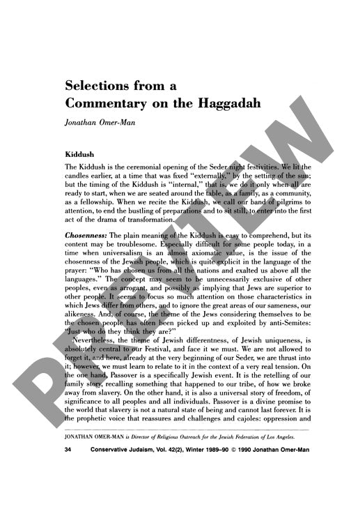 The ancient Passover Seder ceremony contains inherent tensions between Jewish particularism and universal human liberation—tensions that remain critically relevant for contemporary spiritual practice. Through hermeneutical analysis of key liturgical elements including the Kiddush, ritual hand washing (Ur'hatz), the eating of greens (Karpas), the breaking of matzah (Yahatz), and the narrative section (Maggid), this commentary reveals how ritual functions as a vehicle for both personal and communal transformation. Combining traditional Jewish exegesis with modern interpretive approaches, the analysis explores how participants move from specific Jewish historical experience toward universal themes of freedom and redemption. The dual nature of matzah—simultaneously representing both slavery and liberation—exemplifies broader paradoxes within Passover observance, particularly regarding Jewish chosenness in an era emphasizing universal values. Rather than mere historical commemoration or children's educational entertainment, the Seder emerges as a mechanism for contemporary liberation from various forms of personal and collective "Egypt" or constriction. Central to this transformative process is the interplay of questioning and storytelling, which facilitates authentic spiritual growth through active engagement with ritual elements.
