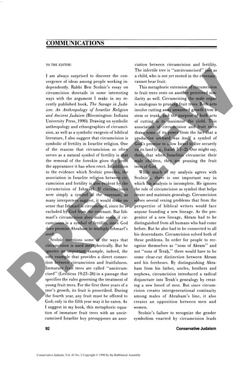 In ancient Israelite religion, circumcision served as a powerful fertility symbol, not merely a covenant marker as traditionally interpreted. Through symbolic anthropology and ethnographic evidence, circumcision's rich metaphorical significance emerges in its visual connection to penile erection and striking parallels with fruit tree pruning, as evidenced in Leviticus 19:23-26 where immature trees are described as "uncircumcised." Building upon Rabbi Ben Scolnic's foundational work, symbolic exegesis of biblical literature combined with comparative anthropological analysis reveals circumcision's multifaceted roles: establishing genealogical continuity within Abraham's lineage, creating distinction from previous generations, and reinforcing gender boundaries through male-exclusive covenant marking. The practice's inherently gendered nature is further supported by Hebrew etymology linking "remember" (zkr) and "male" (zkr), explicitly connecting masculinity with covenant remembrance. Significantly, the timing of circumcision on the eighth day coincides with the mother's emergence from postpartum impurity, suggesting the ritual's role in transitioning the child from maternal blood impurity to covenantal blood marking—a process that establishes distinct gendered religious identities.