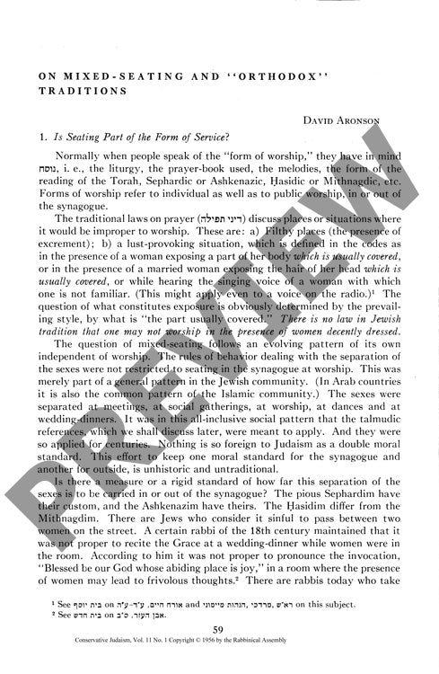 On Mixed Seating and Orthodox Traditions