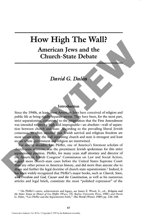 American Jewish views on church-state separation have undergone a dramatic transformation since the 1940s, shifting from near-unanimous support for strict separationism to increasingly diverse positions by the 1990s. Through analysis of legal cases, organizational policies, and intellectual discourse, this research traces how the once-dominant separationist paradigm, championed by influential legal advocate Leo Pfeffer, gradually fractured amid changing communal needs and priorities. Key Supreme Court cases including *Everson v. Board of Education*, *McCollum v. Board of Education*, and *Lee v. Weisman* serve as critical waypoints in this evolution, while Jewish intellectuals like Will Herberg, Milton Himmelfarb, and Irving Kristol mounted influential theoretical challenges to separationist orthodoxy. Several factors drove this ideological realignment: the proliferation of Jewish day schools created new support for parochial school aid, cases like *Goldman v. Weinberger* raised concerns about strict separation impinging on religious practice, and controversies over public religious displays such as Chabad menorahs forced reconsideration of traditional positions. Orthodox communities increasingly led advocacy for religious accommodation while maintaining opposition to Christian dominance. The findings reveal how American Jewish perspectives on church-state issues have become markedly more pluralistic, reflecting diverse institutional interests and theological views - a fundamental shift in how American Jews conceptualize religious freedom in a plural democracy.