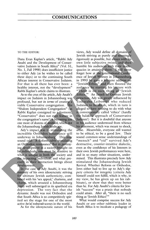 In 1980s Johannesburg, a charismatic rabbi's attempt to establish Conservative Judaism paradoxically strengthened Orthodox practice instead. Rabbi Ady Assabi's dynamic personality and unconventional approach to Jewish authenticity initially sparked religious revival in the community, yet his controversial theological statements and stringent criteria for observance ultimately undermined Conservative movement development. Through case study analysis and correspondence review, this research reveals how Assabi's Shalom Independent Congregation, despite early promise, failed to establish lasting Conservative presence and eventually collapsed. South Africa's unique socio-political landscape, combined with the community's predominantly Lithuanian Orthodox roots and resistance to religious division, created formidable obstacles to Conservative Judaism's establishment. The findings demonstrate that sustainable Conservative development in South Africa demands robust scholarly foundation and educational infrastructure rather than charismatic leadership alone. While Johannesburg proved resistant, Cape Town shows greater potential for authentic Conservative Jewish growth in the long term.
