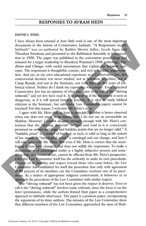 A landmark 1950 decision permitting Conservative Jews to drive to synagogue on the Sabbath continues to divide Jewish legal scholars and shape American Jewish religious life. Through analysis of halakhic argumentation, sociological data, and religious practice outcomes, this examination centers on rabbinic responses to Avram Hein's critique of the original "driving teshuvah" authored by Rabbis Adler, Agus, and Friedman. Critics maintain the decision violates biblical prohibitions and lacks proper legal foundation, while defenders point to its alignment with Conservative halakhic methodology and cite statistical evidence of sustained Sabbath observance. The debate reveals deep tensions between traditional Jewish law and modern suburban American realities, particularly regarding community formation and religious accessibility. Contemporary respondents diverge on whether changed sociological conditions since 1950 necessitate reconsidering the ruling - some advocate stricter interpretation while others suggest expanding permitted activities. The driving teshuvah remains a defining yet controversial element of Conservative Judaism, reflecting broader methodological differences in approaching halakhic change and the movement's ongoing challenge to balance traditional observance with contemporary American Jewish life. The discourse illuminates fundamental questions about religious authority, community structure, and the relationship between law and practice in modern Jewish movements.