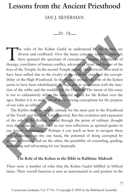 The role of Judaism's High Priest (Kohen Gadol) underwent a dramatic transformation across three millennia - from revered spiritual leader to criticized figurehead to internalized archetype. Through analysis of rabbinic literature, talmudic sources, and Hasidic texts, a clear pattern emerges in how religious authorities perceived and reimagined this central leadership position. During the biblical and First Temple periods, rabbinic sources lauded the High Priest's multifaceted roles as divine intermediary, peacemaker, educator, advocate, and guardian of sacred artifacts. This positive regard deteriorated significantly in Second Temple period texts, which portrayed many High Priests as corrupt officials who pursued wealth and power over spiritual authenticity. Yet rather than reject the priesthood entirely, Hasidic mystics like Levi Yitzhak of Berdichev and the authors of Degel Mahaneh Ephraim and Mei Shiloah later transformed its meaning by internalizing priestly functions as spiritual archetypes accessible to all, particularly the tzaddik. Using comparative textual methodology, this analysis reveals how religious leadership roles adapt while preserving core spiritual purposes - offering vital lessons for contemporary rabbinical leaders about the corrupting influence of power and wealth, as well as the enduring importance of spiritual guidance, counsel, and community advocacy.