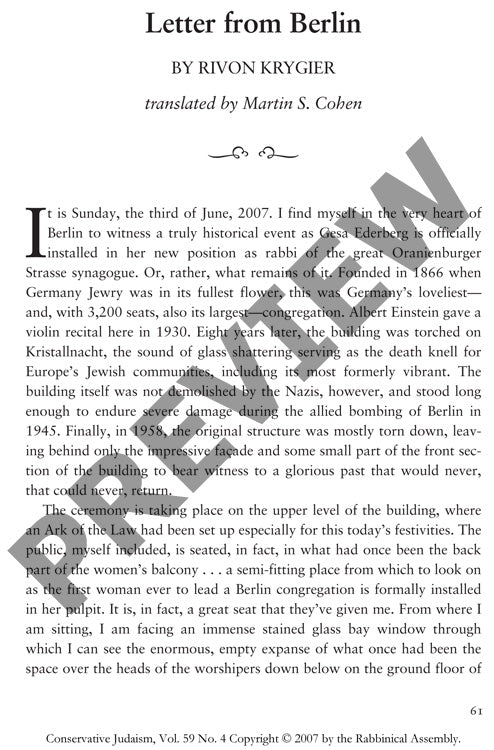 In June 2007, Berlin's historic Oranienburger Strasse synagogue witnessed a transformative moment: the installation of Gesa Ederberg as its first female rabbi since Regina Jonas's groundbreaking 1930 ordination and subsequent murder in Auschwitz. Through participant observation and reflective narrative, this ethnographic account examines how Ederberg's installation embodies both the possibilities and tensions in post-Holocaust German Jewish reconstruction. The ceremony's location in a synagogue built in 1866, destroyed during Kristallnacht, and damaged by Allied bombing provides a powerful symbolic backdrop for analyzing contemporary Jewish renewal. Ederberg's unique journey from German Protestant roots through conversion to Judaism and rabbinical ordination at Jerusalem's Schechter Institute illuminates broader questions of Jewish identity and leadership. Despite the Zentralrat der Juden in Deutschland's official pluralistic stance, significant institutional resistance to female rabbinical leadership persists within German Jewish communities, reflecting wider gender and conversion controversies in European Judaism. The installation marks a critical juncture where new forms of Judaism emerge from pre-war ruins, even as progressive religious leadership continues to face institutional challenges in reconstructing European Jewish life.