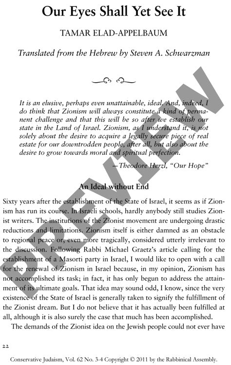 Sixty years after Israel's establishment, Zionism stands as an unfinished project demanding renewal rather than abandonment. By examining the writings of pivotal Zionist thinkers like Herzl, Halevi, and Kook alongside modern Israeli religious and political movements, a clear pattern emerges: authentic Zionism encompasses both political sovereignty and spiritual-moral transformation. Theological and historical analysis reveals that while Orthodox approaches to Zionism have grown ahistorical and politically stagnant, the Masorti (Conservative) movement represents an untapped radical religious force capable of advancing Zionist ideals. To harness this potential, a three-part program for Masorti political engagement is proposed: establishing ideological frameworks for renewed religious Zionism, building multi-denominational coalitions for institutional reform, and developing strategic partnerships with Sephardic Judaism. The research demonstrates that fulfilling authentic Zionist aspirations requires active political participation by moderate religious movements to restore the "lost heritage" of Jewish sovereignty. These findings contribute to contemporary debates about religion-state relations in Israel and the role of religious movements in democratic politics, ultimately advocating for a multi-denominational approach to political engagement that transcends narrow sectarian interests.