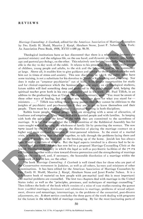 Four influential publications from mid-20th century America reveal both the advances and limitations in Jewish religious scholarship and counseling during this pivotal period. Through critical literary analysis and theological evaluation, distinct patterns emerge in how authors approached marriage counseling, religious movements, liturgy, and Jewish identity. "Marriage Counseling: A Casebook" (Mudd et al.) offers valuable practitioner insights while problematically understating professional qualification requirements. Israel H. Levinthal achieves a rare balanced critique of American Jewish denominations in "Point of View," examining Reform, Orthodox, Conservative, and Reconstructionist movements through halakhic principles with diplomatic yet objective scholarship. Ben Zion Bokser's "The Prayer Book" stands as a noteworthy liturgical achievement, successfully balancing traditional texts with poetic translation and commentary, despite minor inconsistencies. In contrast, Nathan Drazin's "Marriage Made in Heaven" stumbles with medical inaccuracies and oversimplified marital analysis, though boldly addressing intimate topics. Karl Shapiro's "Poems of a Jew" demonstrates fundamental weaknesses in both poetic craft and Jewish theological understanding. Collectively, these works showcase stronger contributions in liturgical and theological domains while revealing significant shortcomings in psychological and literary approaches to Jewish themes.