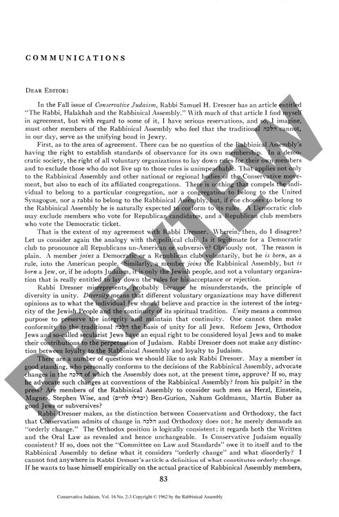 A foundational debate over rabbinic authority and Jewish law emerged in the pages of Conservative Judaism journal through Rabbi Samuel H. Dresner's provocative discourse on the relationship between rabbis, halakha, and the Rabbinical Assembly. Through published correspondence and theological debate, Eugene Kohn challenged Dresner's position by acknowledging the Assembly's organizational authority while questioning traditional halakha as a unifying principle for all Jews. Kohn's Reconstructionist perspective drew a crucial distinction between interpersonal law (bein adam l'chavero) and individual ritual practice (bein adam l'makom), arguing that only the former merited communal enforcement. A second response by Harry E. Schwartz interrogated the contemporary relevance of rabbinic authority itself, proposing that modern intellectual rejection of traditional values, rather than historical patterns of gradual drift, has fundamentally altered rabbinical influence. Their exchange exposed deep fissures within Conservative Judaism regarding halakhic authority, mechanisms for legal change, and the complex intersection between organizational loyalty and Jewish identity. The resulting discourse illuminates ongoing tensions as Conservative Judaism grapples with questions of tradition, authority, and modern adaptation.