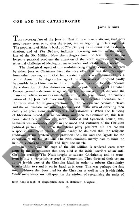 The Holocaust's theological implications continue to challenge both Jewish and Christian thought, raising a fundamental question: How can traditional beliefs about God's nature persist in the shadow of genocide? Twenty years after the murder of six million Jews, three competing theological responses have emerged: a mysterious but omnipotent and benevolent God, an all-powerful but morally indifferent deity, or a morally perfect but limited divine force. Through philosophical analysis, each framework reveals critical weaknesses - traditional monotheistic explanations risk perpetuating dangerous myths about Jewish suffering, materialist interpretations diminish human moral agency, and purely evolutionary concepts of an emerging God could paradoxically justify Nazi ideology through survival-of-the-fittest reasoning. While each theological approach addresses vital human needs - religious faith, ethical inquiry, and objective knowledge - none proves sufficient in isolation when confronting Holocaust theology. A more nuanced synthesis incorporating elements from all three perspectives offers the most viable framework, acknowledging divine mystery and moral imperative while maintaining rational historical investigation. This approach reframes Jewish suffering as emblematic of universal human tragedy rather than divine punishment, contributing to humanity's evolving moral consciousness instead of reinforcing theological myths.