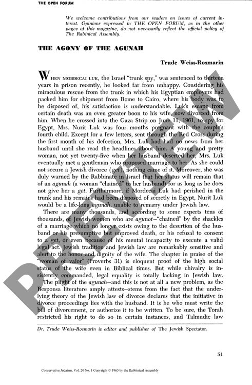 Thousands of Jewish women remain trapped in unwanted or defunct marriages due to a fundamental inequity in Jewish divorce law: only husbands can initiate religious divorce proceedings. These "chained wives" (agunot) face prolonged marital bondage when spouses desert, disappear, become mentally incapacitated, or simply refuse to grant a religious divorce (get). Through analysis of cases like Mrs. Nurit Luk, whose husband defected to Egypt, alongside examination of Jewish legal precedents and rabbinic solutions, this research evaluates both existing and proposed remedies including conditional divorces, ketubah clauses, and civil court enforcement. While rabbis have historically demonstrated compassion through lenient evidence standards, current solutions provide only partial relief and fail to address cases involving desertion, insanity, or disappearance. A definitive solution emerges from the research: transferring executive power from individual husbands to rabbinic courts, following the prosbul precedent established by Hillel. This halakhic reinterpretation would eliminate the contradiction of allowing a personally interested party to make objective legal decisions while preserving Torah authority and addressing the systematic disadvantages facing agunot.