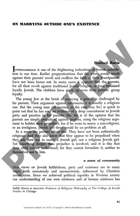 Jewish opposition to intermarriage stems from a profound commitment to communal survival and intergenerational continuity rather than mere religious prejudice or orthodoxy. Through comparative religious analysis and theological-sociological frameworks, fundamental differences emerge between Christian individualistic approaches to faith and Jewish communal covenantal existence. While Christian identity centers on personal religious practice, Jewish identity encompasses a broader historical witness and communal obligation that persists even among secular Jews. The concept of *shalshelet hadorot* - the chain of generations - reveals why intermarriage represents not simply marrying outside one's faith but "marrying outside one's existence." This metaphysical threat to Jewish historical continuity explains why even highly assimilated Jewish parents experience deep concern over intermarriage. The research demonstrates that such opposition transcends conventional religious considerations, instead reflecting an existential imperative to maintain the fundamental links binding Jewish generations and preserving their role as covenantal witnesses through time. These dynamics distinguish Jewish responses to intermarriage from other faith traditions and illuminate the complex interplay between religious identity, communal survival, and intergenerational continuity in contemporary society.