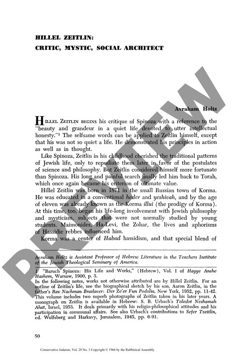 Hillel Zeitlin (1871-1942) embodied the intellectual and spiritual turbulence of early twentieth-century East European Jewry, forging a distinctive path from traditional Jewish education through secular philosophy and back to a transformed Torah-centered worldview. His journey as critic, mystic, and social reformer produced a unique critical methodology that transcended aesthetic analysis to probe authors' spiritual essence and their engagement with ultimate questions. Through close textual analysis of Zeitlin's literary criticism, religious writings, and social proposals, supplemented by contemporary accounts and biographical materials, a portrait emerges of a thinker who demanded total reader engagement and insisted on the inseparable connection between lived experience and textual understanding. Zeitlin's religious philosophy merged traditional Jewish mysticism with modern existential concerns, advocating for religious experience grounded in "amazement" rather than mere ritual observance. His ambitious social vision led to multiple attempts to establish elite circles of dedicated Jews who would transform society through Torah-centered living, though these initiatives failed to gain widespread traction. Zeitlin's synthesis of traditional learning, modern philosophical inquiry, and practical social engagement represents a singular response to the challenges facing Jewish civilization in modernity. His death in the Warsaw Ghetto in 1942 symbolically marked the end of the rich cultural world he sought to preserve and transform.