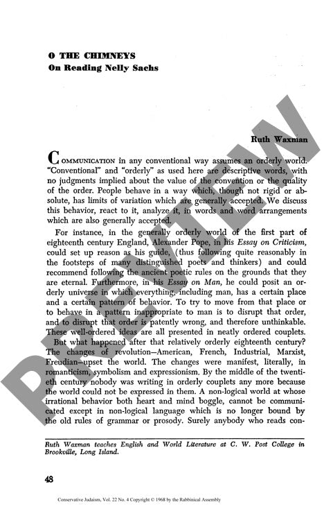 O the Chimneys on Reading Nelly Sachs