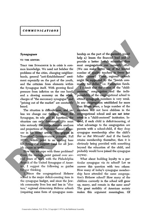 American synagogues face an existential crisis as traditional child-centered models prove increasingly unsustainable. Through extensive analysis of the Philadelphia Branch of the United Synagogue of America, congregational Hebrew schools emerge as the primary source of financial strain, while demographic shifts and high community mobility undermine school-based recruitment strategies. Drawing from qualitative analysis of synagogue operations, including congregational demographics, cost-benefit assessments of Hebrew schools, and community mobility patterns, the research reveals fundamental misalignment between current institutional structures and contemporary Jewish community needs. To ensure long-term viability, synagogues must pivot toward adult-focused programming, emphasizing multiple-level adult education, Jewish cultural activities, and family-centered engagement. The findings support specific structural reforms: establishing regional elementary Hebrew schools with Federation funding and decentralizing worship services to foster greater personal involvement. These adaptations prove essential not only for strengthening American Jewish institutions but also for maintaining robust support for Israel, acknowledging the intricate relationship between domestic Jewish institutional health and broader Jewish communal priorities.