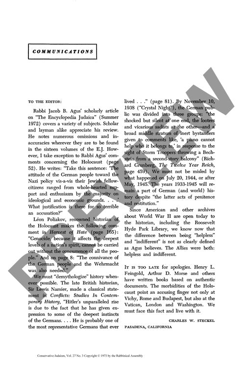 German civilian responses to the Holocaust reveal a more complex reality than either blanket condemnation or wholesale absolution can capture. A comprehensive analysis of the Encyclopedia Judaica, combined with historical documentation from the Roosevelt Hyde Park Library and contemporary observer testimonies, illuminates the spectrum of public participation in Nazi anti-Jewish policies. Through comparative analysis of historical accounts, statistical data from German democratic observers, and voting patterns during the Nazi period, a clearer picture emerges: by 1942, approximately 5% of German civilians enthusiastically supported anti-Jewish measures, while 69% remained indifferent, 21% uncertain, and 5% categorically disapproved. While the constraints of organized dictatorship limited opportunities for resistance, the distinction between helplessness and indifference carries profound historical significance. The evidence-based interpretation acknowledges that Allied nations demonstrated similar patterns of helplessness and indifference, contributing to a more nuanced understanding of moral responsibility in Holocaust scholarship. These findings, drawn from extensive archival evidence, challenge both oversimplified narratives of collective guilt and apologetic accounts that minimize civilian complicity.