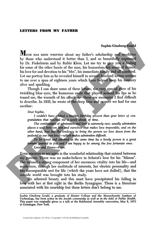 Behind the towering scholarly legacy of Louis Ginzberg lay a deeply human story, revealed through hundreds of intimate letters written to his daughter Sophie over eighteen years. These private family correspondences illuminate a renowned Jewish scholar who balanced intellectual rigor with profound personal warmth, offering advice like "Sie ein mensch" (be a person) while navigating the complexities of mid-20th century Jewish academic life. Through qualitative analysis of this personal archive, a portrait emerges of Ginzberg as a devoted family man who delighted in his roles as husband, father-in-law, and grandfather, while simultaneously engaging in critical diplomatic efforts regarding British Palestine policy and supporting fellow scholars displaced by World War II. The letters reveal his nuanced philosophy of education, particularly his views on reconciling scholarly pursuits with traditional feminine roles, and document his interactions with both distinguished academics and everyday community members. Beyond Ginzberg's celebrated scholarly achievements, this correspondence demonstrates how he maintained accessibility and genuine connection in his personal relationships while upholding academic excellence. This examination of private letters enriches our understanding of major Jewish intellectual figures and highlights how personal archives can reveal the multidimensional nature of scholarly personalities.