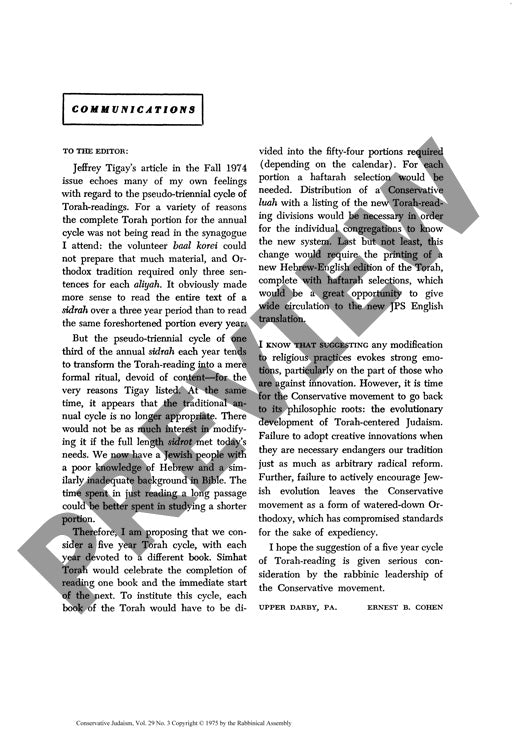 Conservative Judaism's current Torah-reading practices have become more ritualistic than meaningful, creating an urgent need to reimagine how modern congregations engage with sacred text. A five-year cyclical approach to Torah reading emerges as a compelling alternative to both the traditional annual cycle and contemporary pseudo-triennial system. Through critical analysis of existing liturgical practices and their effectiveness in modern congregational settings, this research reveals how current approaches fail to address fundamental challenges: volunteer readers struggle to prepare extensive material, while congregants grapple with limited Hebrew proficiency and biblical knowledge. The proposed five-year cycle would dedicate each year to a single book of the Torah, requiring redistribution of portions, new haftarah selections, and publication of revised Hebrew-English editions. While the pseudo-triennial cycle has devolved into "mere formal ritual, devoid of content," and the traditional annual cycle no longer meets contemporary needs, implementing a five-year cycle would enable more focused study of shorter portions rather than perfunctory reading of lengthy passages. This solution aligns with Conservative Judaism's philosophical commitment to evolutionary development of Torah-centered practice while better serving modern Jewish communities' educational and spiritual needs.