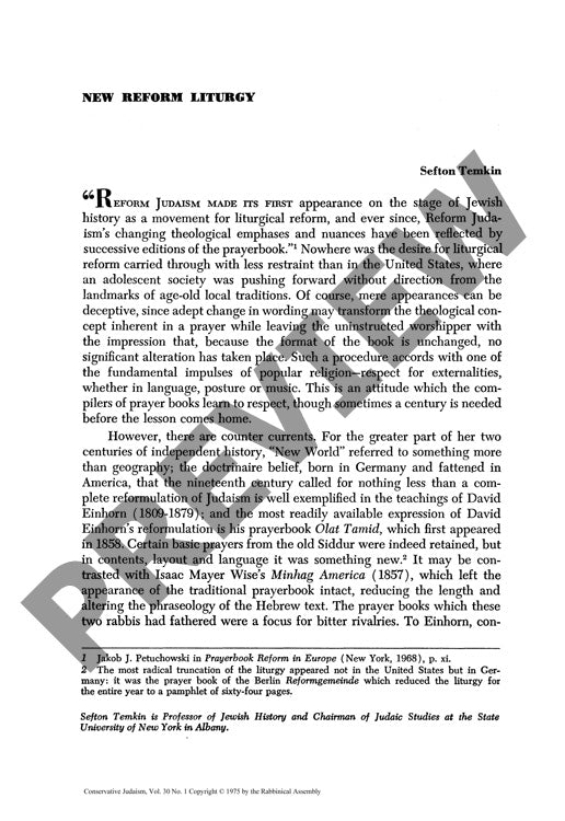 Reform Judaism's liturgical journey from radical nineteenth-century innovations to renewed traditionalism culminated dramatically in the 1975 *Gates of Prayer*, marking a significant reversal in American Jewish worship. Through historical and textual analysis of successive prayer books—from David Einhorn's *Olat Tamid* (1858) and Isaac Mayer Wise's *Minhag America* (1857), through the *Union Prayer Book* (1894-1940), to contemporary reforms—a pattern of theological and ritual evolution emerges. Comparative examination of Hebrew texts, English translations, and theological concepts reveals *Gates of Prayer's* departure from earlier Reform practices through its incorporation of previously abandoned traditional elements: expanded Hebrew texts, restored observances of *Tisha b'Av*, *Yom Haatzma'ut*, and *Yom Hashoah*, and provisions for *tallit* and *tefillin*. Yet this return to tradition brings its own complexities, including problematic inconsistencies in divine name translations and English renderings that often diverge substantially from their Hebrew sources. These liturgical transformations reflect Reform Judaism's broader attempt to reconnect with "Universal Israel" while potentially facilitating religious consolidation with Conservative Judaism, though the prayer book's diversity suggests that organizational rather than creedal unity defines contemporary Reform identity.
