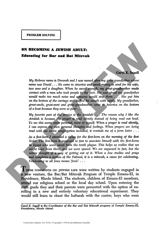 Transforming Bar/Bat Mitzvah from a singular performance into authentic preparation for Jewish adulthood presents a critical challenge for modern Jewish education. Temple Emanu-El in Providence, Rhode Island developed an innovative solution through a comprehensive program built on individualized, experiential learning. Students navigated 32 color-coded project cards across four domains: cognitive learning, rituals and life cycle events, synagogue participation, and Jewish community engagement. The 14-month to two-year curriculum replaced traditional grading with voluntary participation, family involvement, and mentorship relationships. Students engaged in hands-on Jewish living through religious service attendance, mitzvot performance, community leader interactions, and family genealogy exploration. Data collected through written reflections, attendance records, and alumni feedback revealed exceptional participation rates (49 of 51 eligible students in year one, 36 of 37 in year two) and substantive outcomes including increased synagogue attendance, enhanced Jewish identity development, and strengthened community connections. By emphasizing behavioral aspects of Jewish adulthood rather than ceremonial performance, the program successfully cultivated "functional Jews." The results demonstrate that informal, experiential education combined with family engagement and community mentorship effectively prepares adolescents for meaningful Jewish adult participation, suggesting that reimagining Bar/Bat Mitzvah preparation as comprehensive Jewish education strengthens both individual identity formation and community continuity.