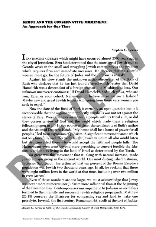 Gerut and the Conservative Movement an A