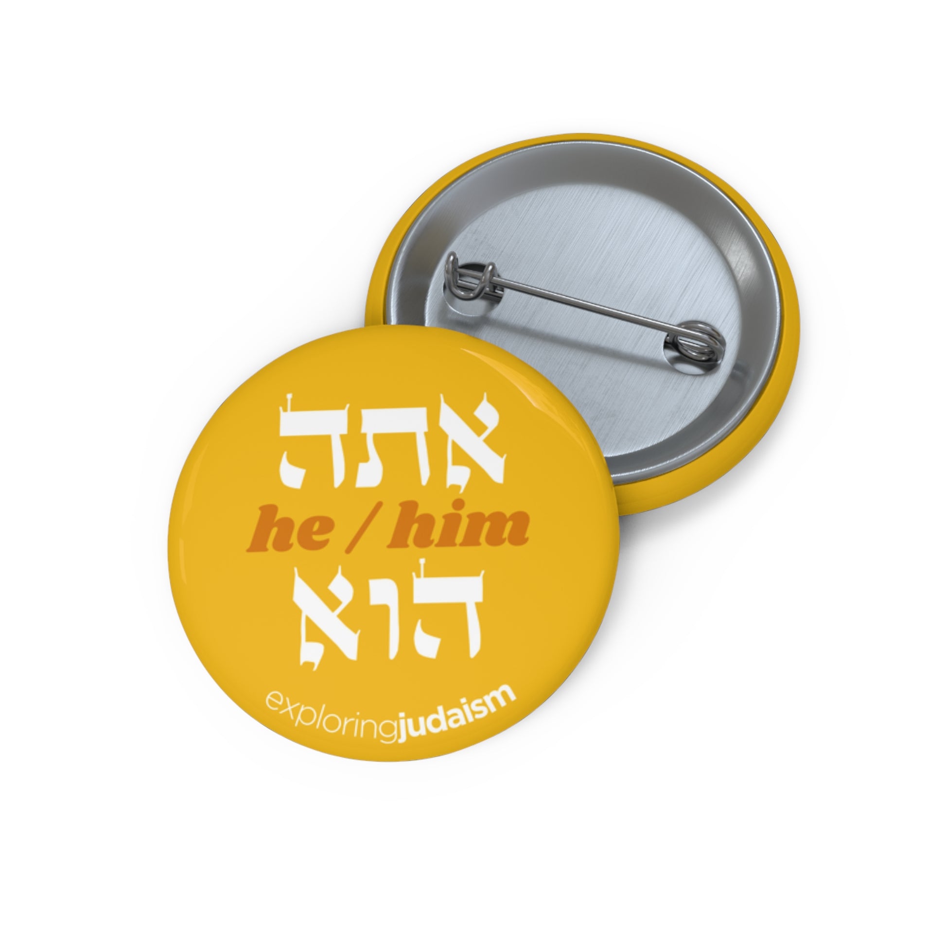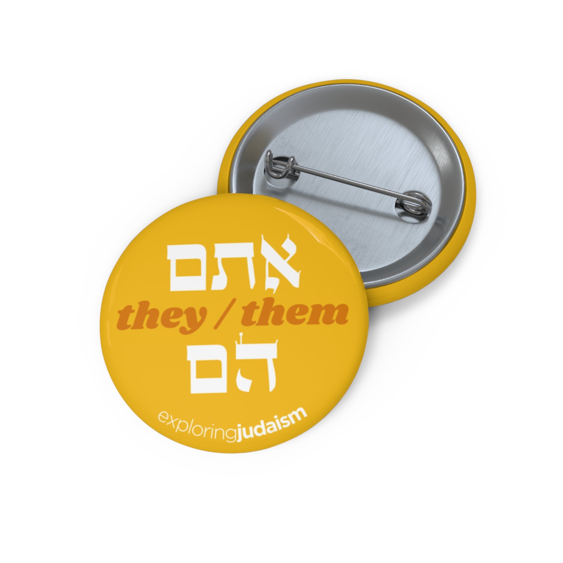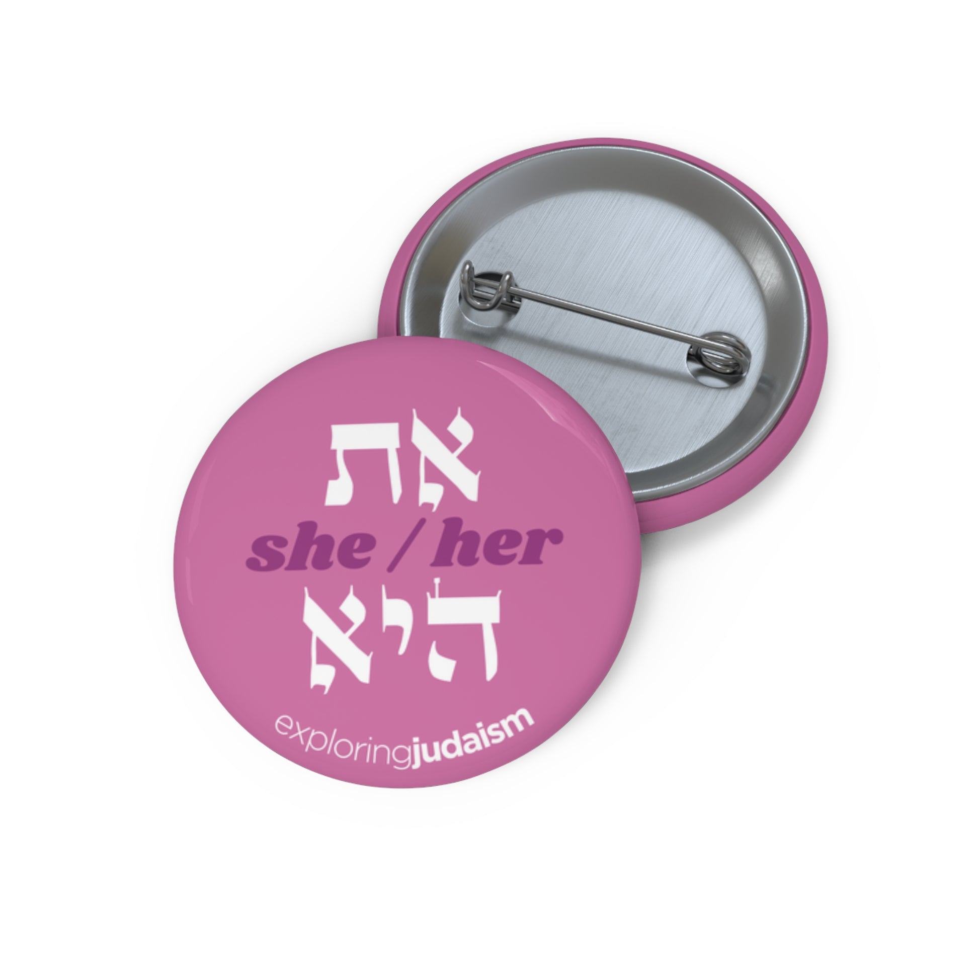 Share your Hebrew pronouns with pride and make every space a welcoming one! Each pin features a pronoun set in Hebrew Torah font on a background color of your choosing.